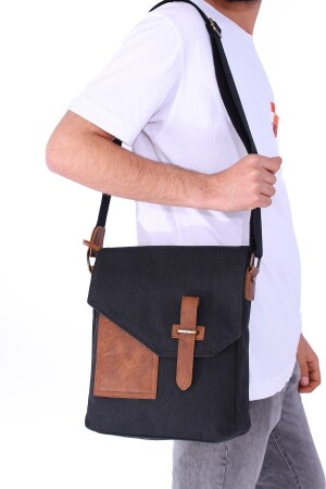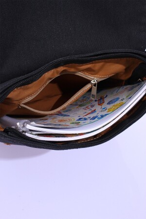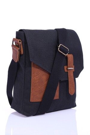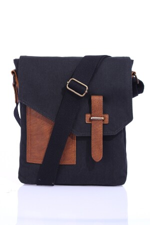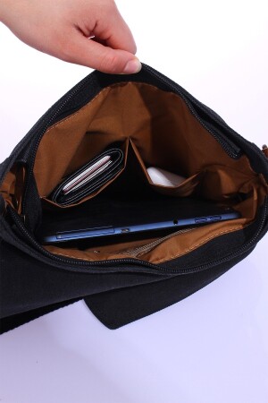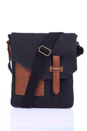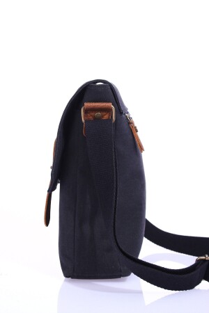 Kadın Siyah Çapraz Ayarlı Askılı Klinkır Kumaş Postacı Omuz Çantası