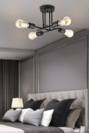 Pare Model Modern Spor Siyah 4'lu Glop Füme Camlı Avize