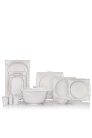مادة من المواد: مواد من الصين العظمية: - 12 طبق 26 سم - 12 طبق عشاء 22 سم - 12 طبق كعك 20 سم - 12 وعاء الحساء 15 سم - 1 طبق قارب 35