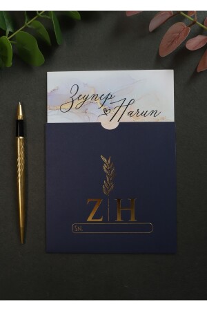 دعوة زفاف من طراز MNZ - ذهبية مع ملف أخضر (50 برنامج)