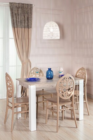 MNZ-Grande Ceviz / Venus طاولة المطبخ مجموعة 1 طاولة 4 مقاعد - كابوتشينو