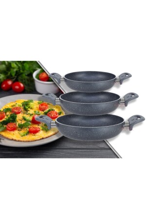 MNZ-Granitta 18-20-22cm مضاعفة الجهاز الرمادي الجرانيت 3 قطع اوميلت / فولاذة الطحين مجموعة 182022CKG