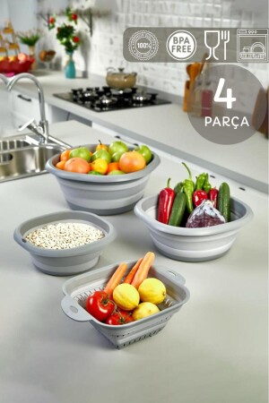 MNZ-4- Piece Folding Strainer Set 4 Piece Kitchen Set Accordion Rice Strainer Funnel Badya Dowry Set