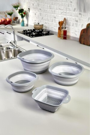 MNZ-Gray 4 قطع Accordion طلاء حوض حوض استراينر مجموعة
