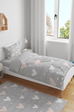 MNZ-Gray Powder Hearts نمط واحد أطفال الأطفال ملابس السرير مجموعة evnev00027