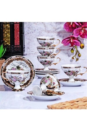 Sunum Tabaklı- Kahve Yanı Bardaklı 18 Parça 6 Kişilik Kahve Fincan Takımı- Seti