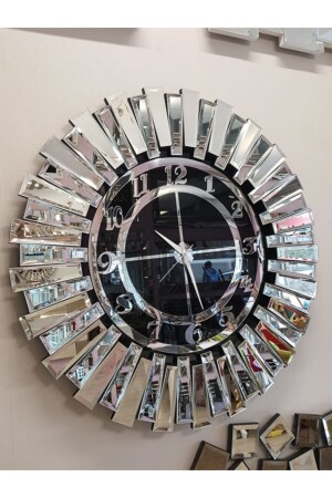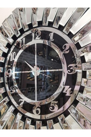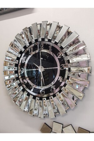 MNZ-Güneş Argent Black Model فضة سوداء لون 85 سم زخرف زجاجي ساعة الجدار HPS-7017