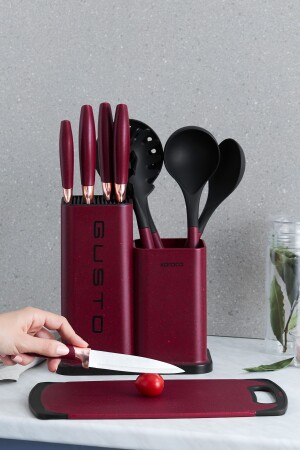 (MNZ-Gusto Claret Red 12 Piece Knife/Cutting Board Set 153. 03. 08. 2616)