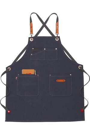 Simple 3'lü Set Ayar Askılı Cepli Mutfak Önlüğü Seti (2 ELDİVEN) Şef Garson Kafe Aşçı Barista