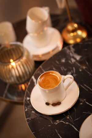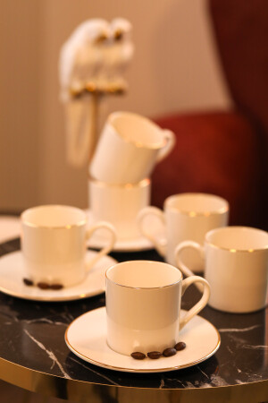 MNZ-Hayal ذهب الذهب 12 قطعة البورتسلين القهوة مجموعة 6 أشخاص