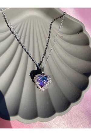Taşlı kalpli Çelik kolye Portakal çiçeği yağı hediyeli