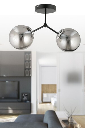 Pare Model Modern Spor Siyah 4'lu Glop Füme Camlı Avize