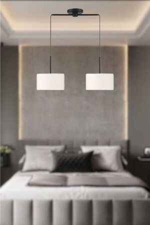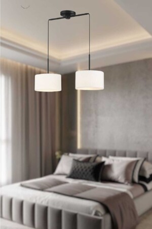 MNZ-Henri 2-piece Black Modern Chandelier (ecru Lampshade) HNRİ-SYH-02