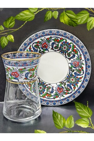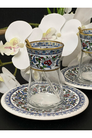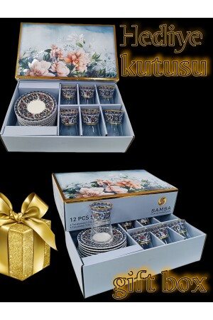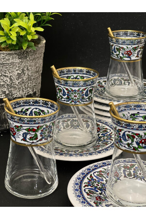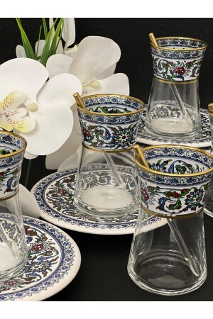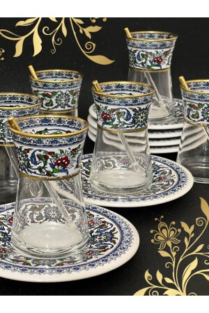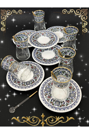 MNZ-منتجنا يتكون من 6 كوبات شاي Paşabahçe مع أكياس السادل و 6 صحن شاي. يتم تصنيع الجهاز البلاطي مع طلاء الذهب