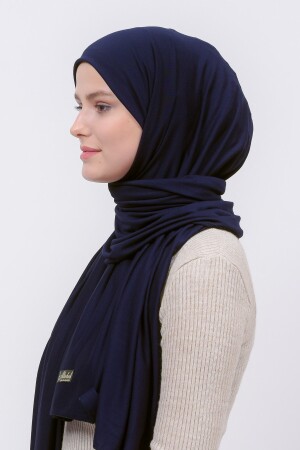 MNZ-Hijab Combed Cotton Shawl Plain Navy Blue (منزخ الحزام)