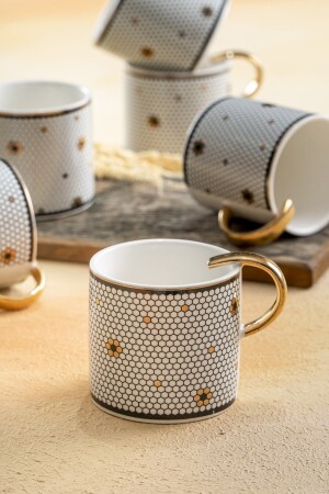 6 Lı Cam Boncuk Kulplu Bardak Kupa Çay Kahve Meşrubat Bardağı 325ml