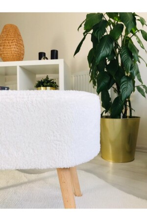 MNZ-Manual Made Off-White Tedy Fabric Cylinder Decorative Pouf Bench (من صنع يدك خارج الأبيض المملء) ، والتي تتميز بالأنسجة