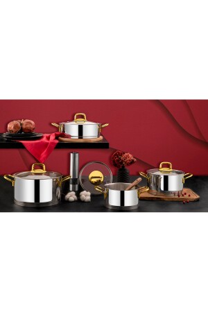 MNZ-Hüma 8 قطع أدوات الطبخ مجموعة ذهبية عادية PRA-3226466-0233