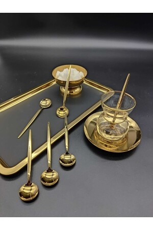 Gold Parlak Çay Kaşık Seti 6 Adet, Kutulu, 18-10 Paslanmaz Çelik 6 Kişilik Çay Kaşığı Seti Titanyum Gold Çay Kaşığı 6 Adet