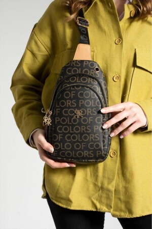 MNZ-Impolo Meri BlackKamelScreen Print حمض وكتف النساء حجم 30x20