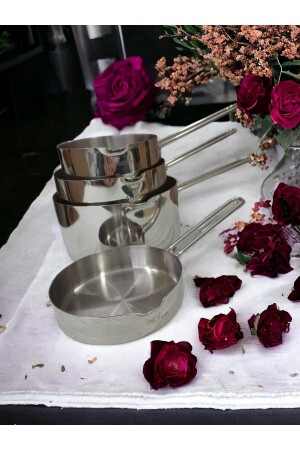 MNZ-İnci صلصة وعاء كازيرولا جنجل لبن مجموعة من 4 (جنجل للصلصة وعلبة لبن 12 سم-14 سم-16 سم) فولاذ المقاو