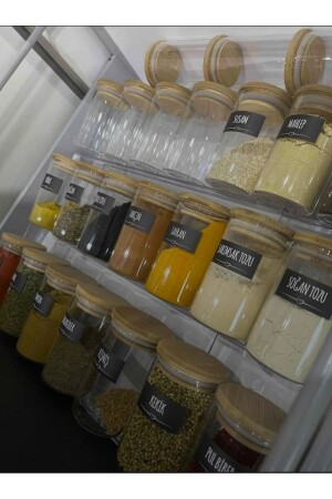 12'li Kapağı Kendinden Kaşıklı Ve Etiketli Baharatlık Seti 300 ml Gold Etiketli Cam Baharat Takımı