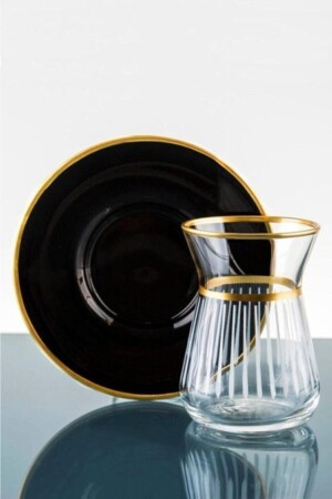 MNZ-الفخام المدخن اللون الأسود مجموعة الشاي - 12 قطعة كوب الشاي مجموعة fumeçaytakimi