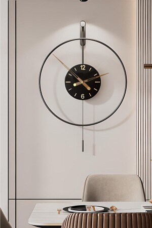 MNZ-Izmir Elit Time 60 سم أسود - ساعة حائط معدنية مزينة حديثة