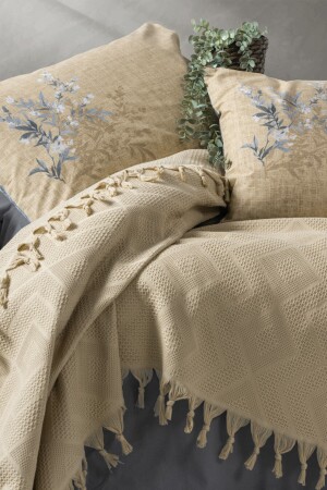 Saçaklı Pamuk Pike Çift Kişilik Loris Bej (200x230cm) 0903010124009