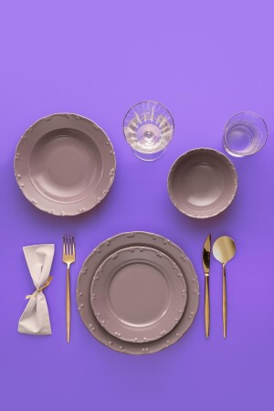 مجموعة عشاء من 24 قطعة من طراز MNZ-Java لـ 6 أشخاص محتويات المنتج: 6 أطباق خدمة، 6 أطباق كعكة، 6 أطباق عميق