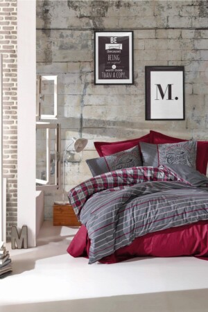 MNZ-Jonas - Claret Red Masculine Double Duvet Cover Set CTN-MSC-Rf-Ç. K-N T-Jonas-Claret حمراء