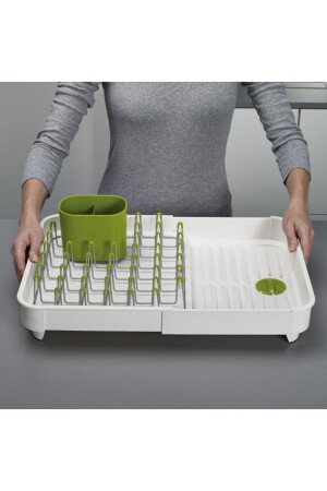 Açılır Kapanır Sürgülü Tabaklık Bulaşıklık Bulaşık Sepeti- Beyaz