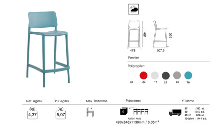 MNZ-Joy - S كرسي بار 65 سم 2 قطع