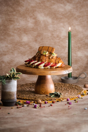 MNZ-Justwood 2 Li Risus&lucca Top Footed 25 سم و 25 كيك مستديرة خشبية عرض كيك خدمة طبق GW007