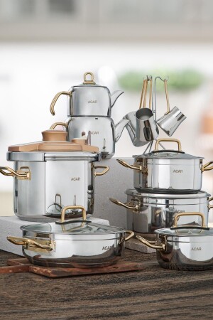 نبتون 18 قطعة الفولاذ المعدني مجموعة الذهب محتوى المنتج 1 وعاء عميق - 16 سم (1.5 ليترا) 1 وعاء عميق - 20 سم (3 ليترا)