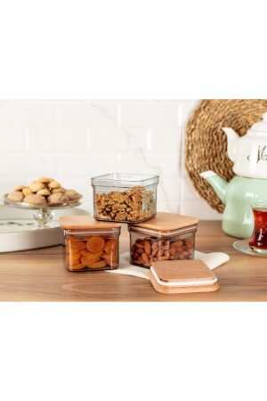 MNZ-Kaviera 500ml حاوية تخزين مع غطاء خشب 3 قطع 1KSAKL0432-8682116783132