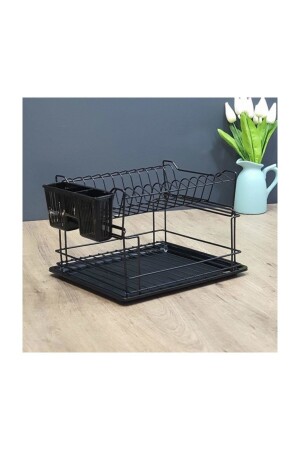 Paslanmaz Alüminyum Iki Katlı Siyah Bulaşıklık Modern Tabaklık