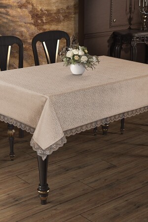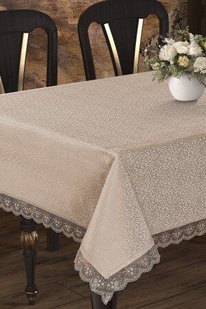 مُقسمة من طراز MNZ-Tile، خالية من الرعاية، خالية من البقع، ملابس طاولة من اللون، كريم 160 × 220 سم