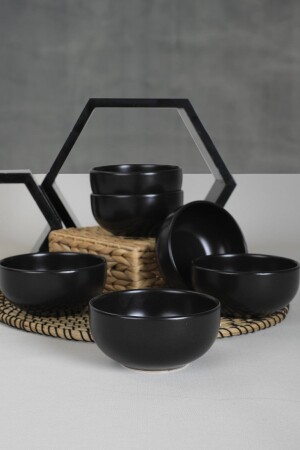 مادة من المواد: السيراميك • وعاء الحساء السوداء المقطوعة السيراميك 12 سم 6 قطع • بنية السطح: مقطوعة • معلومات المنتج • 6 قطع