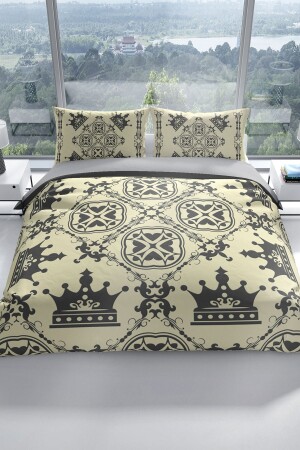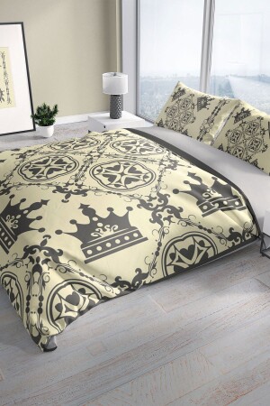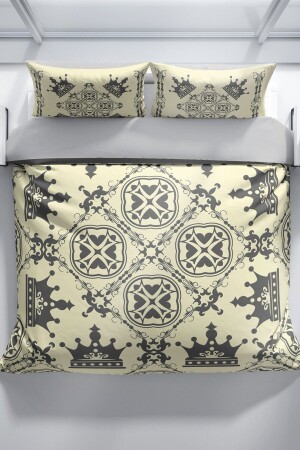 م.ن.ز-بيرلا سيرة الملك الملكي 3D القطن ساتيين غطاء القشرة المزدوجة مجموعة لمسة لطيفة نوم سلمي 200 سم x 220 سم - ساتي