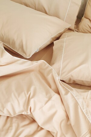 MNZ-King Size King Size Double Duvet Cover Set Plain 100% Cotton Ecru Piping Hotel Series Toprak RHN3082B