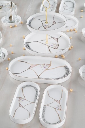 64 Parça 12 Kişilik Platin Modern Krem Kahvaltı Takımı