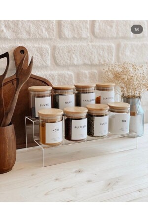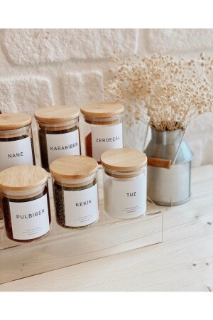 12'li Kapağı Kendinden Kaşıklı Ve Etiketli Baharatlık Seti 300 ml Gold Etiketli Cam Baharat Takımı