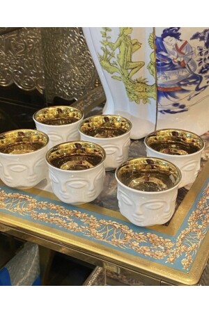 مجموعة من 6 كوبات كأس إسبريسو بيضاء مع ذهب داخل المنتج المستورد