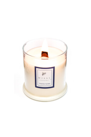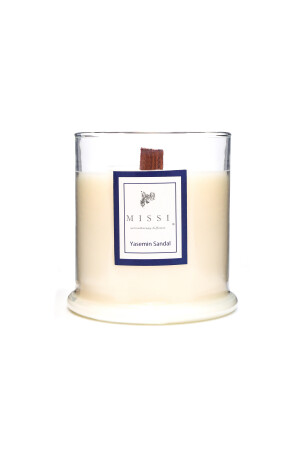 MNZ-Large Blown Glass Wooden Wick Jasmine Sandal Vegan Candle (380 جرام) CHKRYSM1