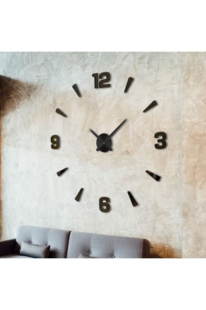 MNZ-Large Size 3d Latin Numeral Wall Clock رقم أسود ارتفاع 10 سم