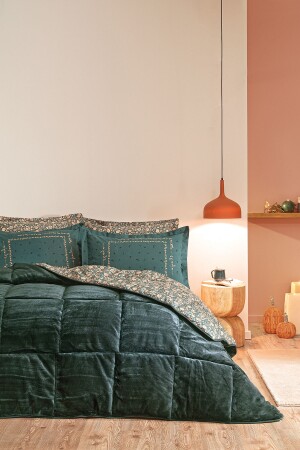 مينيومال تصميم ليلة تريولا بطانية النوم مجموعة، التي تخلق جو حديقة الشتاء مع لونها النيق والتفاصيل الزهرية التي تزدهر تص