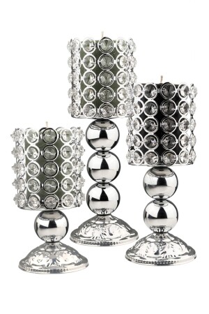 MNZ-Leman 3 مجموعة من 3 حاملات شمعة كروم كريستال 300 000 0755 03