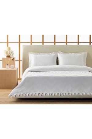 MNZ-Leona Jacquard النسجة الملك الحجم بيكي 220 × 240 سم أبيض
