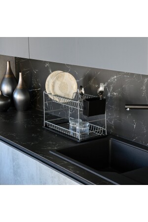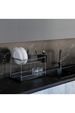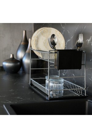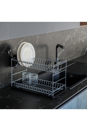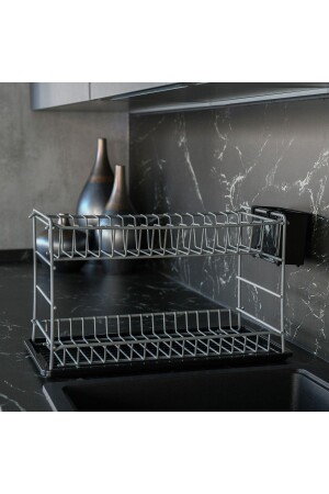 Paslanmaz Alüminyum Iki Katlı Siyah Bulaşıklık Modern Tabaklık